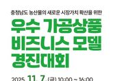 [ 중앙뉴스미디어 ] 충남도 농업기술원은 오는 11월 7일 농가공경영체와 전문가, 일반 소비자 등 300여 명이 참석한 가운데 ‘2025년 우수 가공상품 비즈니스 모델 경진대회’를 개최한다고 30일 밝혔다. 이번 대회는 지역 농업인이 직접 개발·생산한 농산물 가공상품의 경쟁력과 사업성을 평가하고, 소비자와의 소통을 통해 충남 농산물의 새로운 시장가치를 확산하기 위해 마련했다. 행사장에서는 15개 시군을 대표하는 농업경영체 30여 곳이 참여해 지역 농산물을 활용한 다양한 가공상품을 선보인다. 도 농업기술원은 창의성·브랜드 이미지·시장성 등 3개 항목에서 전문가 심사를 거쳐 도지사상 4점을 수여할 예정이다. 일반 소비자가 직접 참여하는 ‘소비자 반응조사’도 함께 진행된다. 조사는 소비자들이 각 제품의 맛·당도·식감 등을 평가하고, 가장 선호하는 상품에 투표하는 방식인 만큼 단순한 품평을 넘어 소비자 중심의 제품 개선 방향을 제시하는 현장형 데이터로 활용할 계획이다. 소비자 참여 확대를 위해 ‘지역농산물 활용 바른 식생활 체험 프로그램’도 운영한다. 주요 프로그램으
