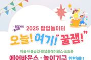 [ 중앙뉴스미디어 ] 청주시는 오는 18일 개최 예정이었던 팝업 놀이터 ‘오늘! 여기! 꿀잼’을 비 예보로 인해 19일 오전 11시부터 오후 3시까지 유기농복합단지에서 운영한다고 밝혔다. 올해 6회차 운영하는 이번 행사에서는 반복되는 구성을 보완하고 신선함을 더하기 위해 새로운 놀이기구와 체험 프로그램을 다채롭게 선보인다. 주 무대에서는 마술, 버블, 디제잉 공연, 가족운동회가 이어지며, 아이부터 어른까지 모두가 참여할 수 있는 신나는 무대를 운영한다. 놀이존에는 아이들에게 인기 있는 △바이킹 △회전비행기 △워터롤러 △에어바운스 △챌린지바운스 등이 설치되며 △야구 축구 등 게임형 체험도 함께 운영된다. 특히 지난 5회차에서 큰 호응을 얻은 연날리기 프로그램이 이번에도 이어져, 개인 연을 지참한 가족은 현장에서 연날리기 대회에 참여할 수 있다. 체험존에서는 △페이스페인팅 △풍선아트 △민속놀이(투호·공기놀이·제기차기·굴렁쇠)를 비롯해 △청주시육아종합지원센터의 아동 만들기 체험 △청주시 드림스타트의 키링 만들기 △비눗방울 체험 등 다채로운 프로그램이 진행된다. 또한 △캐릭터 포토