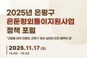 [ 중앙뉴스미디어 ] 서울 은평구는 외로움과 고립 위험에 취약한 청년층을 대상으로 민관이 협력할 방안을 모색하고자 오는 17일 ‘고립·은둔 정책포럼’을 추진한다고 밝혔다. 구는 지난 4월부터 7월까지 은평구에 거주하는 청년 2천여 명을 대상으로 ‘청년 실태조사’를 진행했다. 실태조사는 올해 초 서울시에서 개발한 ‘외로움 및 고립 위험 체크리스트’를 활용해 진행됐으며, 문항은 1단계 사회적관계, 2단계 일상생활 상황, 3단계 위기징후로 구성됐다. 이날 포럼에서는 실태조사의 결과가 발표되며, 결과를 기조 발제로 삼아 고립·은둔 청년 지원을 위한 민간과 공공의 역할 등에 대해 토론이 이뤄진다. 권일남 명지대학교 청년지도학과 교수가 좌장이 돼 포럼을 이끈다. 정은정 명지대학교 통합치료대학원 상담심리학과 교수의 기조 발제 발표에 따라 ▲김연은 생명의전화종합사회복지관장 ▲윤철경 G’L청소년연구재단 학교밖청소년연구소장 ▲김정애 은평구 녹번종합사회복지관 부장 ▲최선희 은평구 통합돌봄과 주무관이 토론을 이어간다. 포럼에 참석하려면 포스터 내 큐알(QR)코드를 통해 신청서를 작성한 후 제출하면 된다. 또