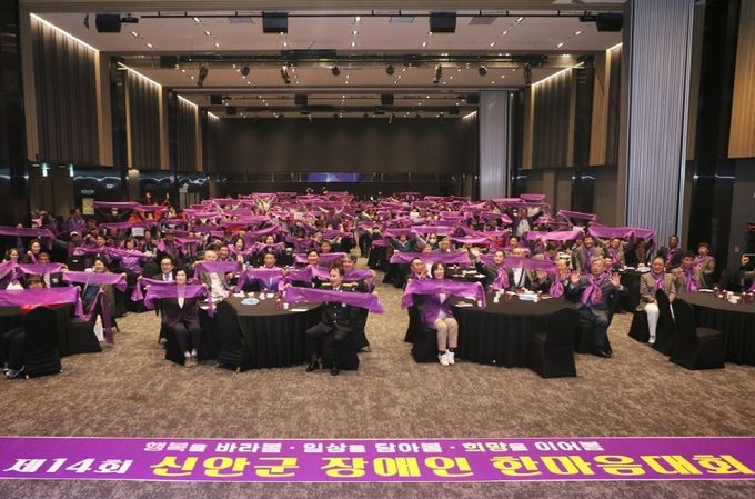 [ 중앙뉴스미디어 ] 신안군이 10월 29일 자은면 라마다프라자&씨원리조트에서 제14회 신안군 장애인 한마음대회를 개최했다. 이번 대회는 장애인과 비장애인이 함께 소통하고 화합하며 모두가 존중받는 사회를 만들어가는 중요한 발걸음이 됐다.