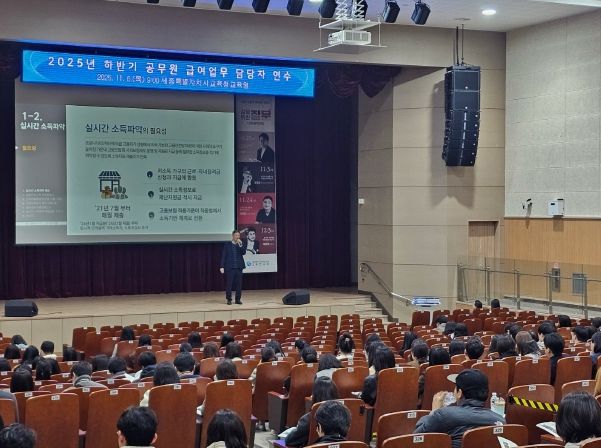 오전 공무원 급여 연수에서는 ▲나이스 급여작업 절차 ▲주요 수당 지급 방법 ▲현장 미흡 사례를 중심으로 실무 역량을 점검했으며, 특히 대전지방국세청 관계자가 참여해 소득자료 제출 관련 사항을 직접 안내하는 등 심화 교육으로 연수 만족도를 높였다.