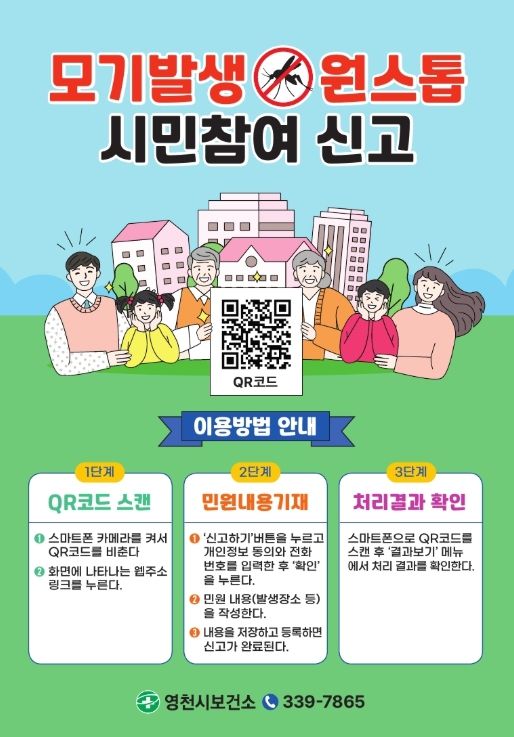 [ 중앙뉴스미디어 ] 영천시보건소는 QR코드를 활용한 ‘모기발생 원스톱 시민참여 신고’ 시스템을 시범 운영한다고 10일 밝혔다.