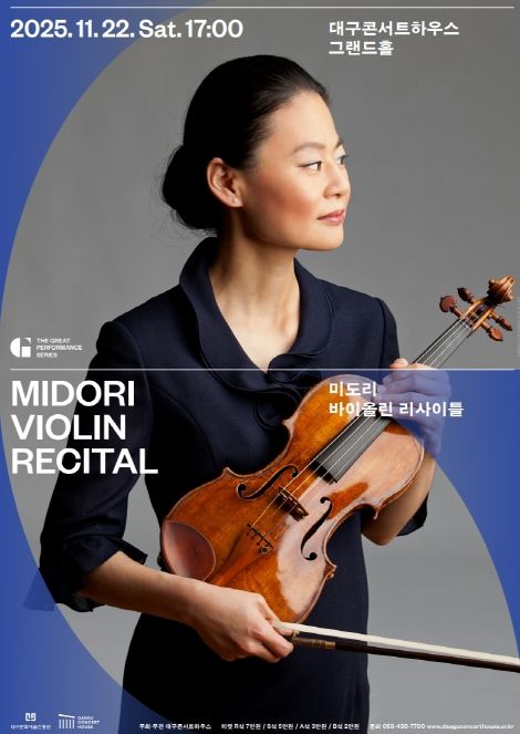 박창근 대구콘서트하우스 관장은 “세계 음악계의 거장 미도리를 통해 예술이 지닌 본질적인 울림과 인간적 메시지를 함께 느끼는 시간이 되길 바라며 이번 무대는 단순한 리사이틀을 넘어, 한 예술가의 철학과 삶이 응축된 진정한 음악의 순간이 될 것”이라고 전했다.