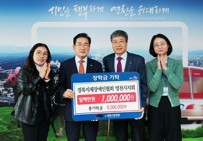 경북지체장애인협회 영천시지회는 지역 장애인에 대한 사회 인식 개선과 사회참여 확대, 자립을 도모하며 장애인 삶의 질 향상을 위해 활발하게 활동하고 있다. 또한, 지역인재 양성에도 꾸준히 관심을 가지고 2020년부터 올해까지 매년 장학금을 기탁해, 총 기탁금이 600만원에 이른다.