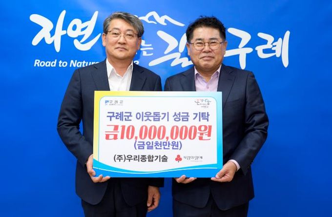 [ 중앙뉴스미디어 ] 전남 구례군은 지난 26일 ㈜우리종합기술이 지역 내 취약계층의 따뜻한 겨울나기를 돕기 위해 성금 1천만 원을 기탁했다고 밝혔다.