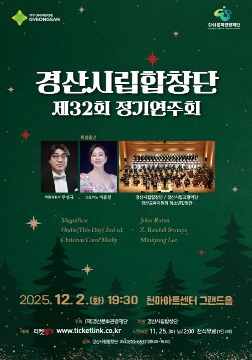 [ 중앙뉴스미디어 ] 경산시립합창단이 오는 12월 2일 오후 7시 30분 영남대학교 천마아트센터 그랜드홀에서 2025년 마지막 정기연주회를 개최한다.