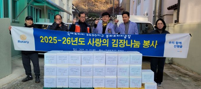 이날 김장 나누기 봉사에서는 봉화로타리클럽 회원 40여명이 참여한 가운데 재료 손질부터 절임, 양념 버무리기, 포장까지 직접 진행했으며, 준비된 김장김치는 거동불편 어르신 등 돌봄이 필요한 가구에 전달될 예정이다.