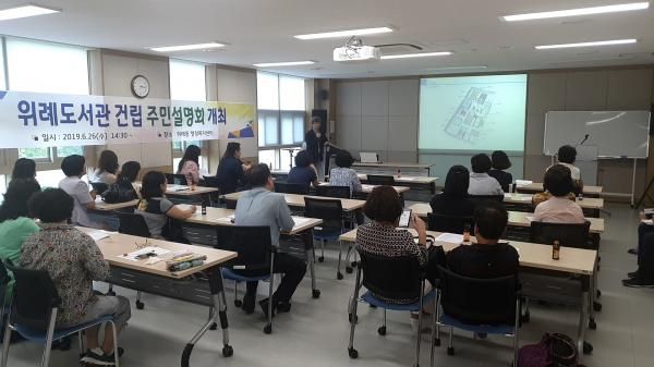 지역 유관기관단체장 및 아파트 동대표등 관심있는 주민들이 참석한 이번 주민설명회는 , 위례도서관의 추진현황 및 향후 추진계획 , 실별 공간구성 및 기능 , 가구배치 계획 , 지열냉난방시스템 등에 대해 설명했고 첫 번째 진행한 설명회보다 좀 더 구체적인 계획을 제시했다.