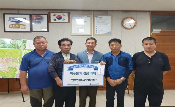 조성계 안중읍장은 “어려운 경제상황에서도 소중한 성금을 기탁해주신 안중민속5일장상인회원분들께 존경과 감사의 마음을 전한다”며 “서로가 서로를, 이웃이 이웃을 돕는 문화를 통해 모두가 행복한 안중읍이 될 수 있도록 읍에서도 적극 노력하겠다”고 전했다.