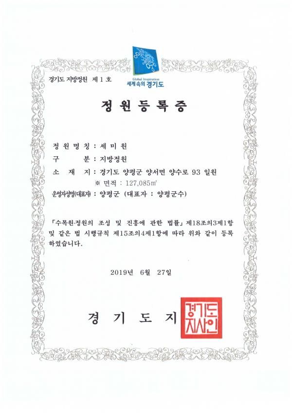 정동균 양평군수는 “먼저, 세미원을 경기도 제1호 지방정원으로 지정해준 이재명 경기도지사에 감사의 말을 전한다”며 “세미원은 이제 체계적이고 계획적으로 합법적 기반위에 사업을 수행할 수 있게 됐다. 부족한 기반시설과 계절적 한계를 해소하고 지역주민을 비롯한 수도권 주민들에게 편안한 휴식공간과 고품질의 생태관광을 제공함으로써 정원문화의 확산·보급에 기여할 수 있는 유익한 공간으로 재탄생 할 수 있도록 최선을 다하겠다”는 소감을 밝혔다.