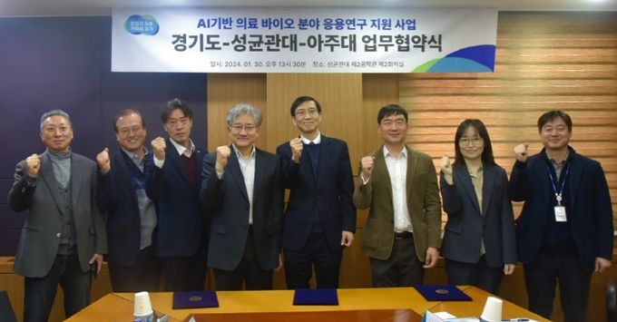 경기도는 30일 성균관대학교 제2공학과 제2회의실에서 성균관대 및 아주대와 ‘AI기반 의료·바이오 분야 응용연구 지원’ 사업 업무협약을 체결했다.