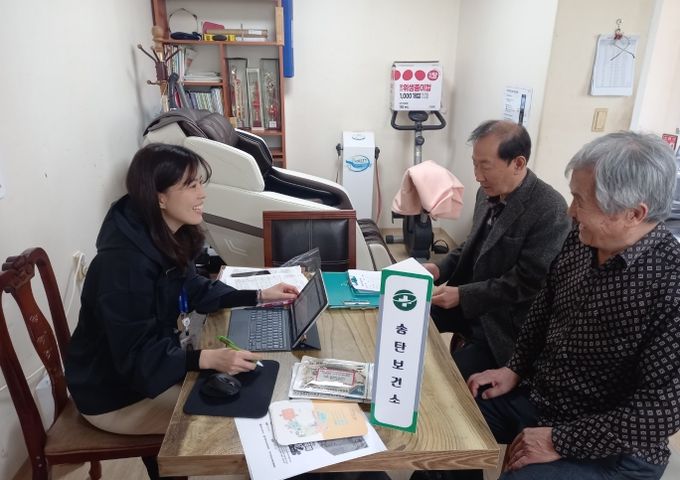 경로당 이용 어르신을 대상으로 치매안심센터 직원이 경로당을 방문해 치매 인지선별검사와 치매 예방을 위한 교육을 제공하고 있다. 인지선별검사는 15분 내외로 진행되며, 전반적인 인지기능에 대한 평가 후 검사 결과를 바로 확인 할 수 있는 검사이다.