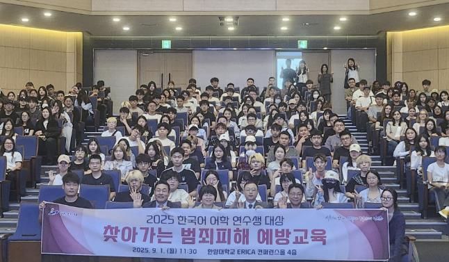 [ 중앙뉴스미디어 ] 안산시는 지난 1일 한양대학교 ERICA 컨퍼런스홀에서 한국어 수강 외국인 연수생을 대상으로 ‘찾아가는 범죄피해 예방교육’을 실시했다고 2일 밝혔다.