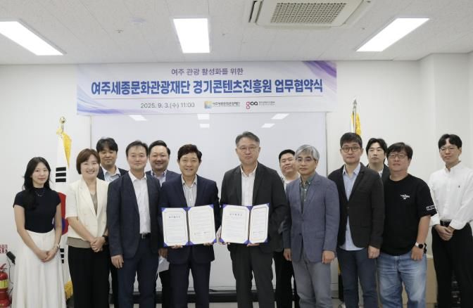 이날 협약식에는 이순열 여주세종문화관광재단 이사장과 탁용석 경기콘텐츠진흥원장을 비롯해 양 기관 관계자들이 참석해 상호협력 방안을 논의했다.