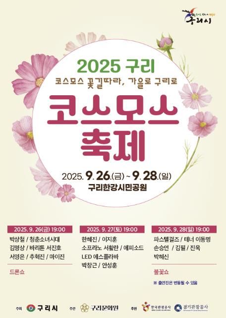 [ 중앙뉴스미디어 ] 구리시는 오는 9월 26일부터 28일까지 개최되는‘2025 구리 코스모스 축제’에서 문화누리카드 임시 가맹점을 한시적으로 운영한다고 밝혔다.