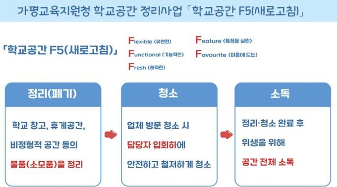 [ 중앙뉴스미디어 ] 경기도가평교육지원청은 교육청은 2025년 하반기 부터 학교공간 정리사업인 ‘학교공간 F5(새로고침)’을 시범 추진한다.