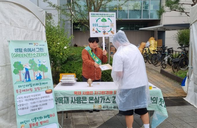 [ 중앙뉴스미디어 ] 김포시는 지난 19일 장기동 한강중앙공원에서 국산 목재 이용, 탄소중립 실현, 목재 이용 문화 정착을 촉진하기 위하여 목재이용 권장 캠페인을 개최했다.