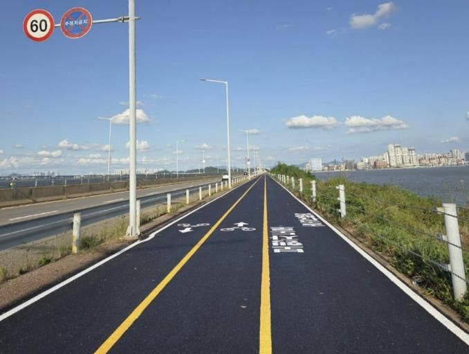 [ 중앙뉴스미디어 ] 시흥시는 지난 9월 8일부터 18일까지 시화호 방조제 자전거도로 3.8km 구간에 대한 재포장 및 도색 정비 공사를 완료했다.