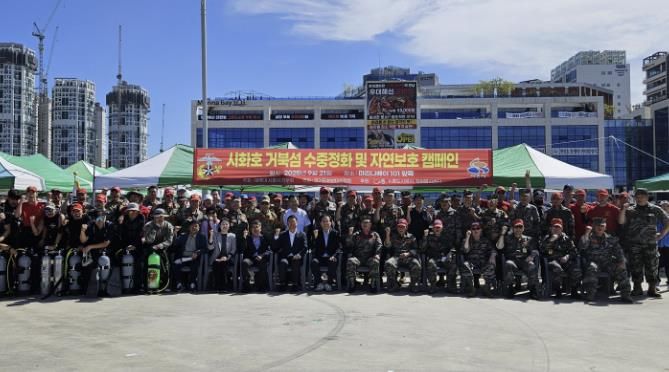 [ 중앙뉴스미디어 ] 해병대시흥시전우회는 지난 9월 21일 거북섬마리나 일원에서 수중ㆍ수변 정화 활동과 자연보호 캠페인을 실시했다. 이번 행사에는 해병대시흥시전우회뿐만 아니라 경기도 각 시군 해병전우회 회원들과 시흥도시공사 직원들도 참여해 정화 활동을 지원했다.