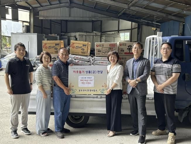 [ 중앙뉴스미디어 ] 동두천시 환경사업소는 9월 22일 추석을 앞두고 백미(10㎏) 20포와 라면 10박스를 소요13통 마을발전위원회에 기탁했다고 밝혔다.