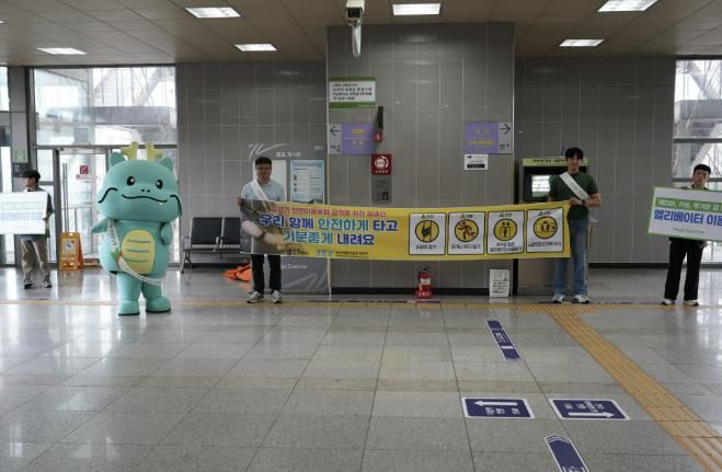 이번 캠페인은 시민들에게 친근하게 다가갈 수 있도록 용인특례시 대표 캐릭터 ‘조아용’을 활용해 진행됐으며 ▲손잡이 잡고 이용하기 ▲탑승 중 걷거나 뛰지 않기 ▲노란 안전선 안에서 탑승하기 ▲무거운 짐·손수레는 엘리베이터 이용하기 등 에스컬레이터 안전수칙을 집중적으로 알렸다.