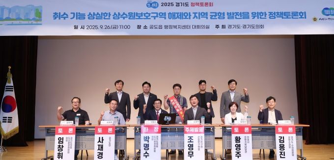 [ 중앙뉴스미디어 ] 경기도의회 도시환경위원회 박명수 의원(국민의힘, 안성2)이 좌장을 맡은 '취수 기능을 상실한 상수원보호구역 해제와 지역 균형 발전을 위한 정책토론회'가 26일 오전 11시, 공도읍 행정복지센터 대회의실에서 열렸다. 이번 토론회는 ‘2025 정책토론 대축제’의 일환으로 박명수 의원이 기획하고 경기도의회와 경기도가 공동으로 주최했다.