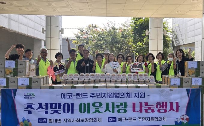 이번 과일 선물세트는 에코랜드 주변지역 주민지원협의체(위원장 이영근)의 주민지원사업 기금으로 마련됐다. 남양주시자원봉사센터(북부분소) 주관으로 별내면 생활개선회와 자원봉사단 회원들이 정성껏 만든 모둠전도 함께 전달돼 추석의 따뜻한 정을 나누는 의미 있는 시간이 됐다.