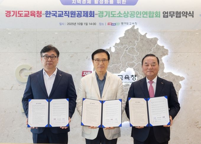 [ 중앙뉴스미디어 ] 경기도교육청이 1일 남부청사에서 경기도소상공인연합회, 한국교직원공제회와 ‘지역경제 활성화를 위한 상생 업무협약’을 체결했다.
