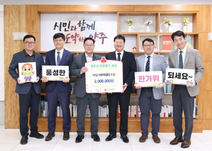 [ 중앙뉴스미디어 ] 양주시가 지난 30일 내일사회적협동조합(이사장 송영진)로부터 성금 200만원을 기탁받았다.
