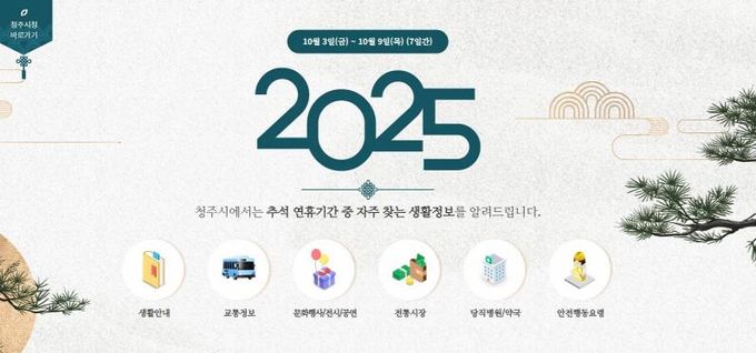 [ 중앙뉴스미디어 ] 청주시는 시민들이 연휴 기간에 필요한 생활정보를 신속하게 얻을 수 있도록 오는 9일까지 시 누리집을 개편해 운영한다고 2일 밝혔다.