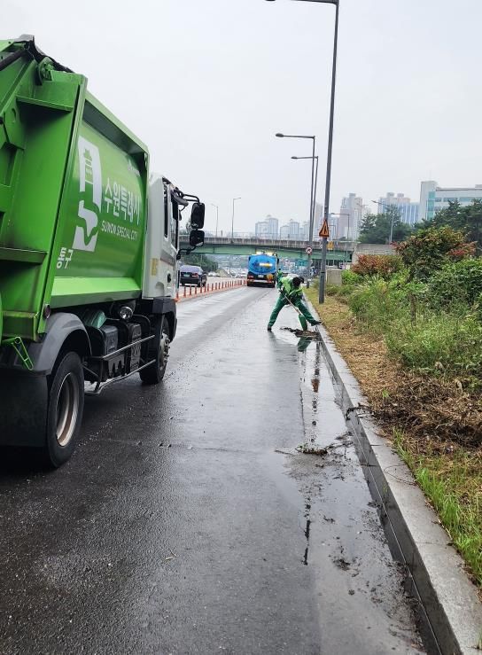 [ 중앙뉴스미디어 ] 수원특례시 영통구는 '대한민국 새단장' 캠페인의 일환으로 민족 최대의 명절 추석을 맞아 고향을 찾는 귀성객들에게 쾌적하고 안전한 도로 환경을 제공하고자 영동고속도로 동수원나들목 진출입로 집중 환경정비를 실시했다.