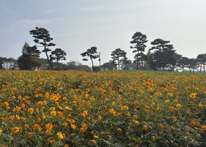 금은모래강변공원 초화원(2,400㎡, 약700평)은 매년 다양한 종류의 초화류를 계절별로 심어 색다른 풍경을 연출하고 있다. 가을을 맞이하여 황화코스모스를 심었으며 만개한 황화코스모스 언덕이 절정의 풍경을 이루고 있다.