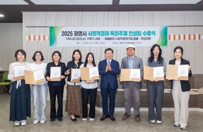 [ 중앙뉴스미디어 ] 광명시는 2일 광명시 평생학습원에서 ‘사회적경제 특화주제 컨설팅’ 수료식을 개최했다.