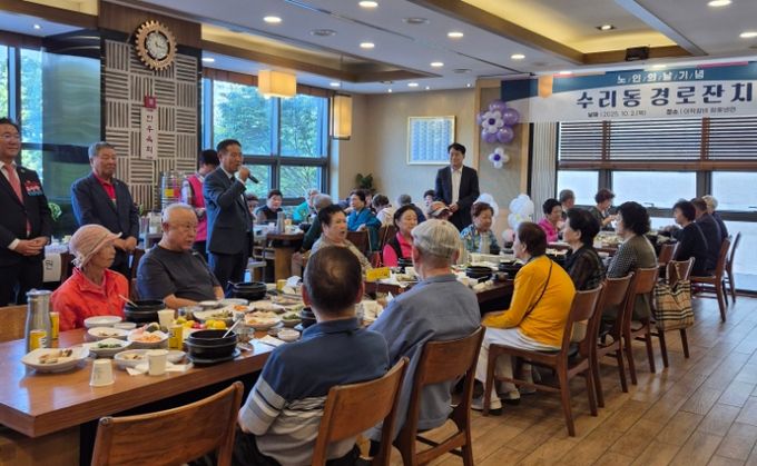 [ 중앙뉴스미디어 ] 군포시 수리동 주민자치회(회장 고진해)는 제29회 노인의 날을 맞아 지난 10월 2일 수리동 어르신들을 대상으로 경로잔치를 개최했다. 이번 행사는 하은호 군포시장, 이학영 국회부의장 등 여러 내빈과 수리동 직능단체장들이 어르신 100여 명과 뜻깊은 자리를 함께했다.