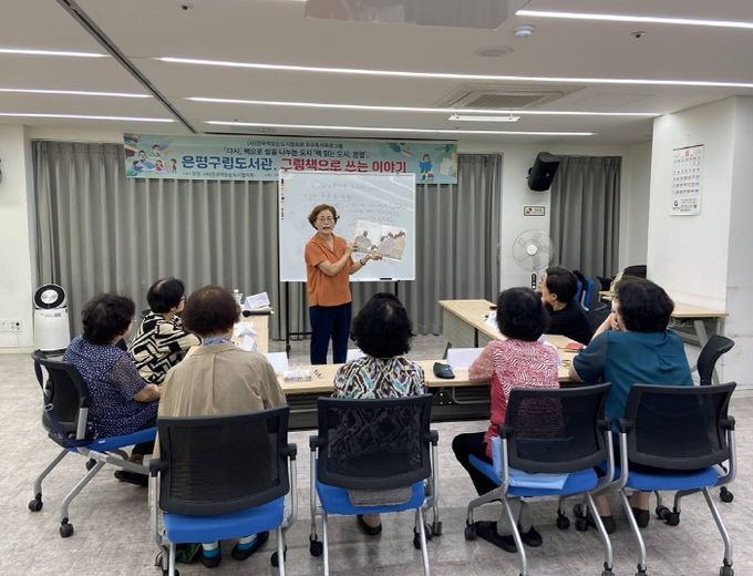 [ 중앙뉴스미디어 ] 서울 은평구는 은평구립도서관이 대조노인복지관 어르신들을 대상으로 진행한 시니어 독서 문화 프로그램 ‘그림책으로 쓰는 이야기’를 성공적으로 마무리했다고 밝혔다.