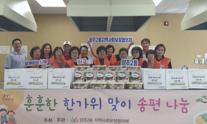 [ 중앙뉴스미디어 ] 양주시 양주2동 지역사회보장협의체가 최근 추석을 맞아 관내 취약계층 100가구를 대상으로 송편을 전달했다.