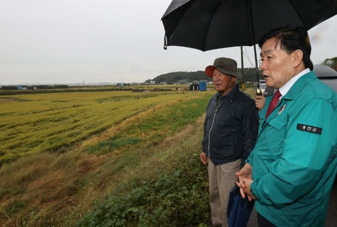 옹진군수는 연휴가 끝난 10일 즉시 북도·영흥면 현장을 찾아 벼 도복 상태를 점검하고, 수확을 앞둔 벼가 넘어지면서 수확량 감소와 품질 저하 우려에 근심이 큰 농민들을 위로했다.