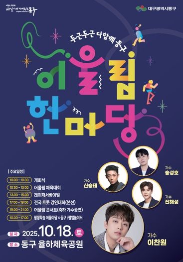 대구 동구청은 오는 18일, 율하체육공원 일원에서 2025년 어울림한마당 ‘두두다동’을 성대하게 개최한다고 밝혔다.