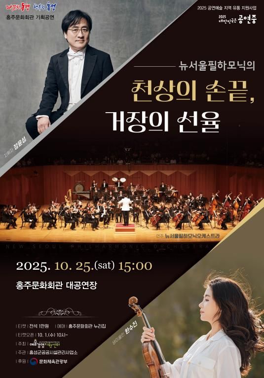 홍성군에 따르면 지휘자 장윤성이 이끄는 뉴서울필하모닉오케스트라와 세계적인 바이올리니스트 한수진의 협연으로 차이코프스키와 브람스 음악을 통해 관객들과 만날 예정이다.