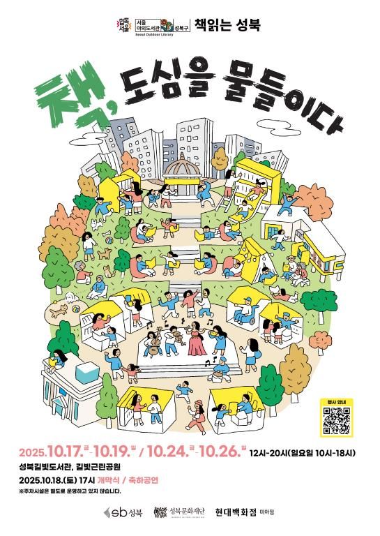 [ 중앙뉴스미디어 ] 서울 성북구와 성북문화재단이 오는 10월 17일부터 26일까지 매주 금·토·일요일, 성북길빛도서관과 길빛근린공원 일대에서 『서울야외도서관 책 읽는 성북 – 책, 도심을 물들이다』를 운영한다.