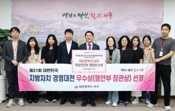 [ 중앙뉴스미디어 ] 대전 서구는 제21회 대한민국 지방자치 경영대전에서 지방 물가 안정 분야 우수상(행정안전부 장관 기관 표창)을 받았다고 13일 전했다.