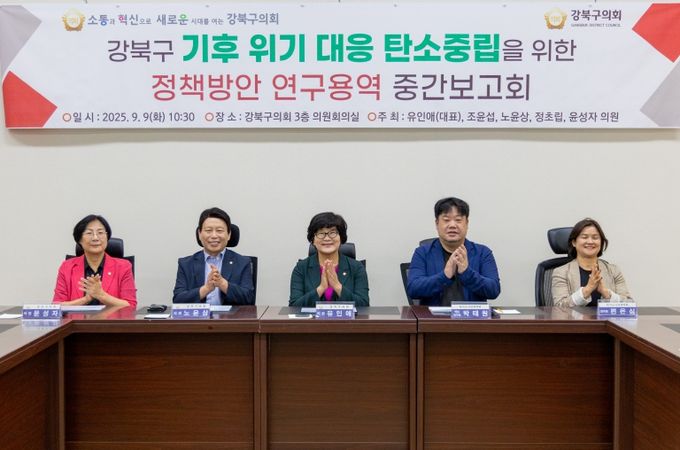 [ 중앙뉴스미디어 ] 강북구의회 의원연구단체인 ‘강북구 기후위기 대응 탄소중립을 위한 연구회’ (대표의원 유인애)는 지난 9월 9일 의회 3층 의원회의실에서 중간보고회를 열었다.