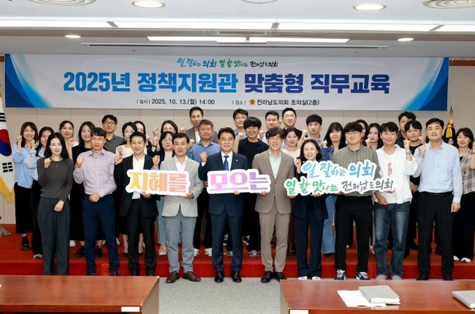 [ 중앙뉴스미디어 ] 전라남도의회는 10월 13일, 도의회 초의실에서 소속 정책지원관과 직원을 대상으로 ‘맞춤형 직무교육’을 실시했다.