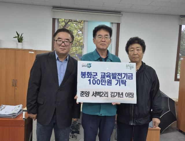 [ 중앙뉴스미디어 ] 춘양면 서벽2리 김기년 이장은 지역 인재 육성과 교육환경 개선을 위한 뜻을 모아 지난 13일 봉화군 교육발전기금으로 100만 원을 기탁했다.