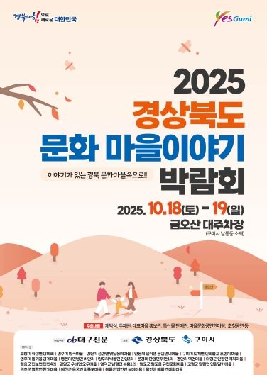 [ 중앙뉴스미디어 ] ‘2025 경상북도 문화마을이야기 박람회’가 10월 18일부터 19일까지 이틀간 구미시 금오산 대주차장에서 열린다. 올해로 11회째를 맞는 이번 박람회는 ‘이야기가 있는 경북 문화마을속으로!’를 주제로 경북 곳곳의 숨은 마을 전통과 역사를 발굴하고, 지역의 문화적 가치를 공유하기 위해 마련됐다. 도내 시·군을 대표하는 20개 마을이 참가해 화합의 장을 이룬다.