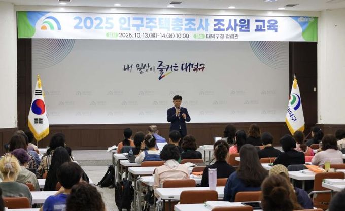 [ 중앙뉴스미디어 ] 대전 대덕구는 10월 13~14일 양일간 구청 청렴관에서 ‘2025 인구주택총조사’ 현장 조사를 수행할 조사원 및 예비 조사원을 대상으로 교육을 진행했다고 밝혔다.