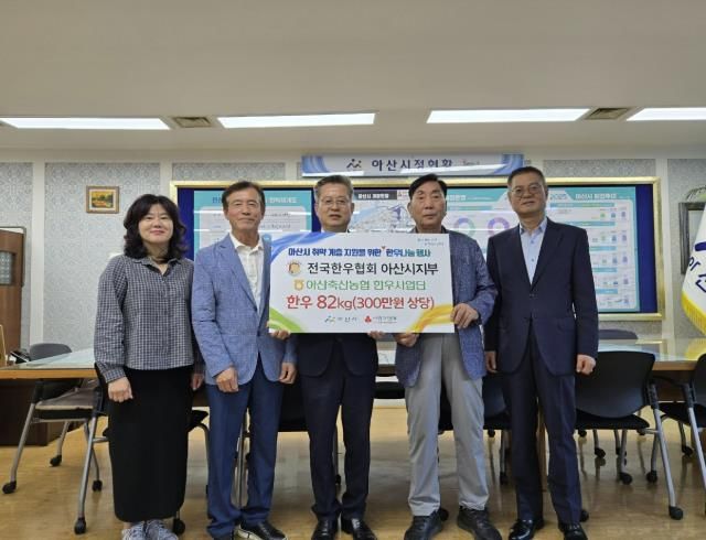 [ 중앙뉴스미디어 ] 아산시는 (사)전국한우협회 아산시지부가 지난 14일, 관내 사회복지시설을 지원하기 위해 한우 82kg(약 300만 원 상당)을 후원했다고 밝혔다.
