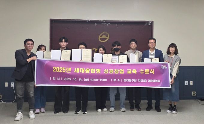 이필형 동대문구청장은 “세대가 함께 배우고 도전한 이번 교육을 통해 서로의 경험과 열정이 하나로 모여 새로운 창업의 길을 열었다.”라며, “앞으로도 구민이 세대를 넘어 함께 성장할 수 있도록 적극 지원하겠다.”라고 말했다.