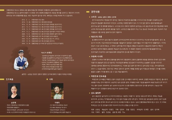 이번 공연에는 손광섭 예술감독을 비롯해 전병진, 김현우, 정명진, 김지혜, 권혁진, 이종빈, 이재웅, 박대열 등 국악인들이 함께 무대에 오른다.