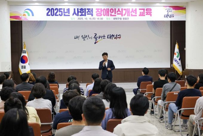 [ 중앙뉴스미디어 ] 대전 대덕구는 16일 구청 청렴관에서 공직자 100여 명이 참석한 가운데 ‘사회적 장애 인식개선 교육’을 진행했다고 밝혔다.